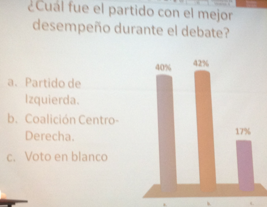 El debate llevado acabo el dia 13 de Febrero de 2013, que tuvo como tema principal la aceptación o no de la adopción por parte de parejas homosexuales, tuvo un rumbo inesperado, a pesar de que el porcentaje de votación fue reñido, el partido ganador fue la union Centro- Derecha, se debe resaltar que es un triunfo inesperado debido a que la gran mayoría de ciudadanos en Terralíbera hacen parte del partido de Izquierda.